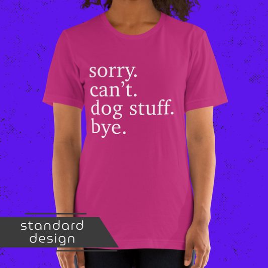 Sorry. Can't. Dog Stuff. Bye. Unisex T-Shirt