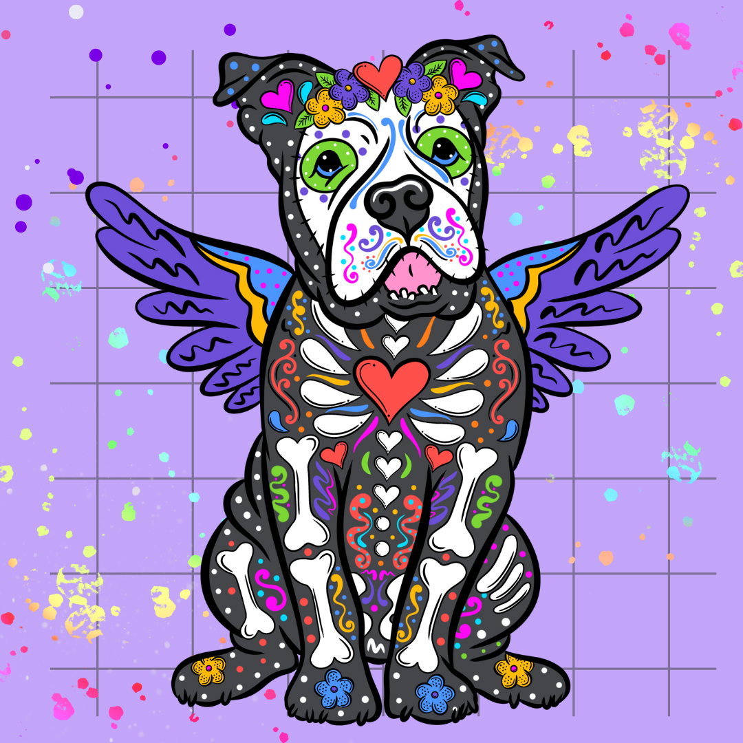 Meet the Dia de los Muertos FairyTAIL — where your pup is reimagined as a radiant spirit animal bursting with color, culture, & heart. Each hand-drawn portrait is inspired by traditional Alebrije artistry, blending bold patterns, symbolic detailing, and luminous hues to honor the bond between life, love, & memory.