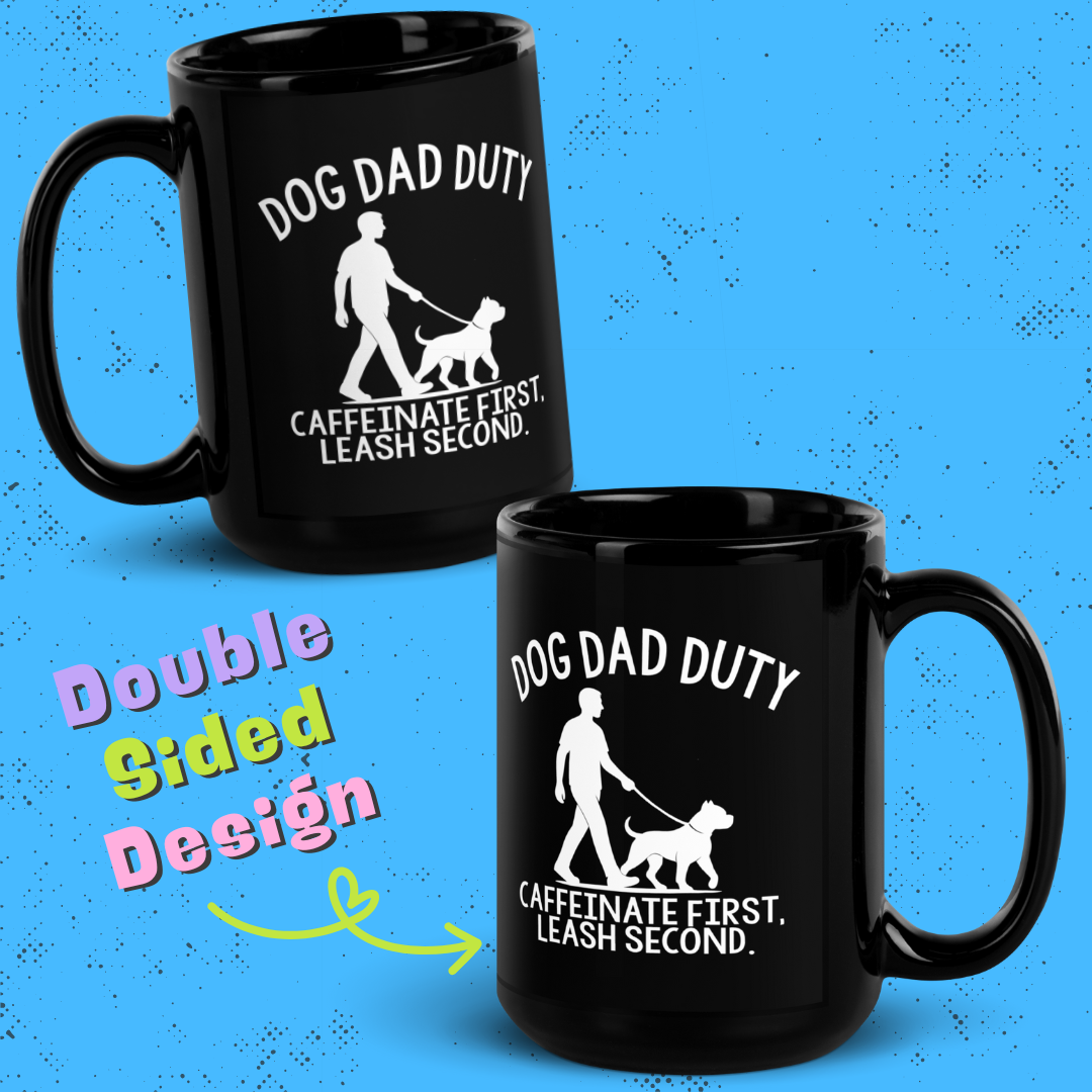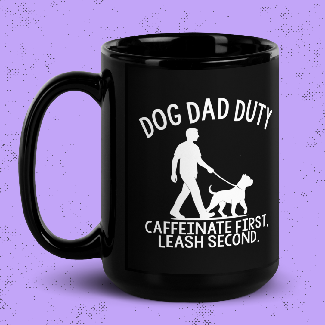 For the dog dads who know the morning routine: caffeinate first, leash second. This 15oz glossy black ceramic mug is dishwasher/microwave safe, lead- & BPA-free, and printed on both sides. A sturdy sidekick for your daily dog dad duties.