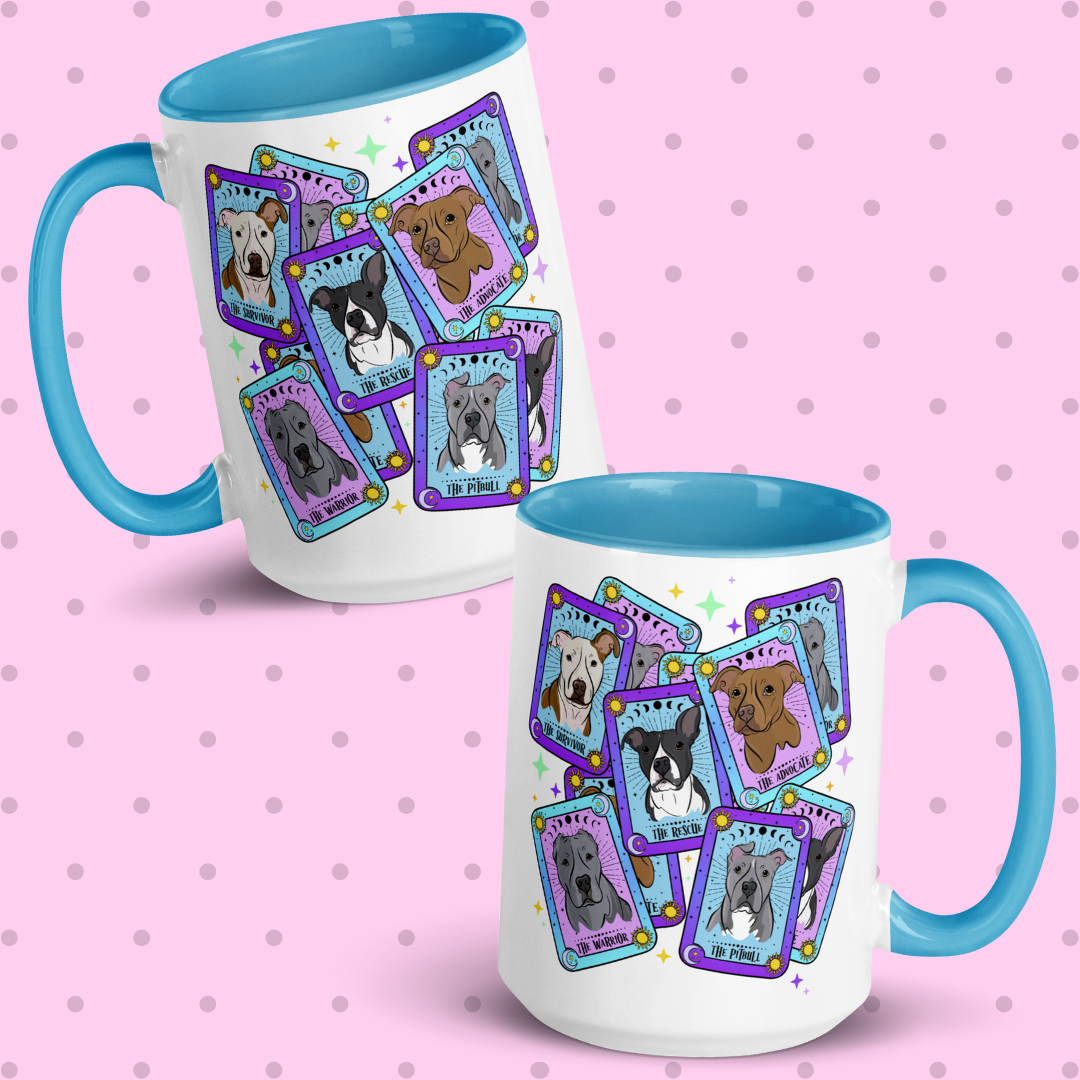 Uncover the magic of pitties with The Misjudged Oracle. Featuring the enchanting faces of Oakley, Frankie, Oliver, Fiona & Edward - each brought to life as their own vibrant tarot card - this design celebrates the misunderstood with a touch of cosmic charm; a playful & powerful nod to the wisdom & whimsy of our favorite misjudged pups.