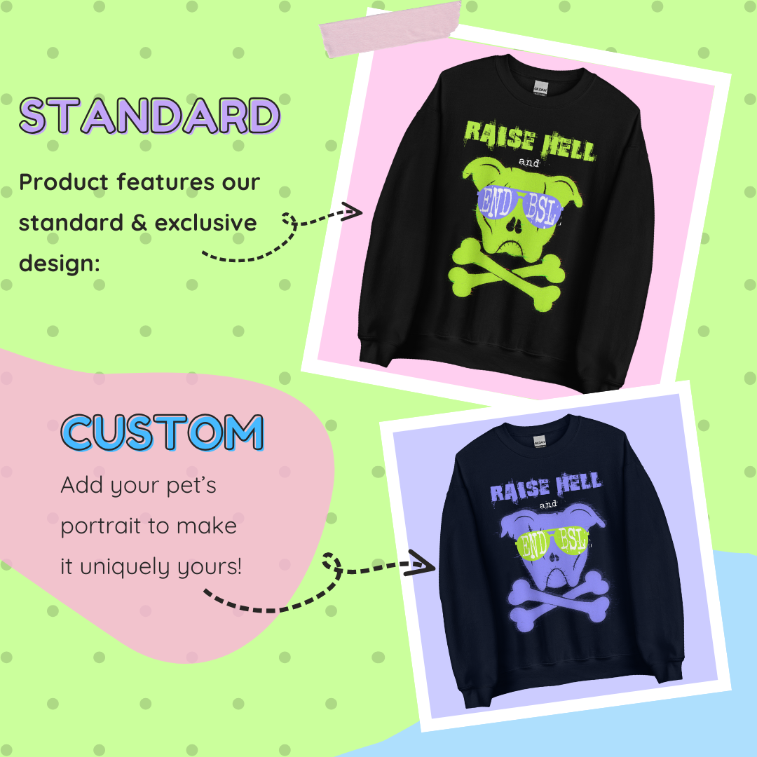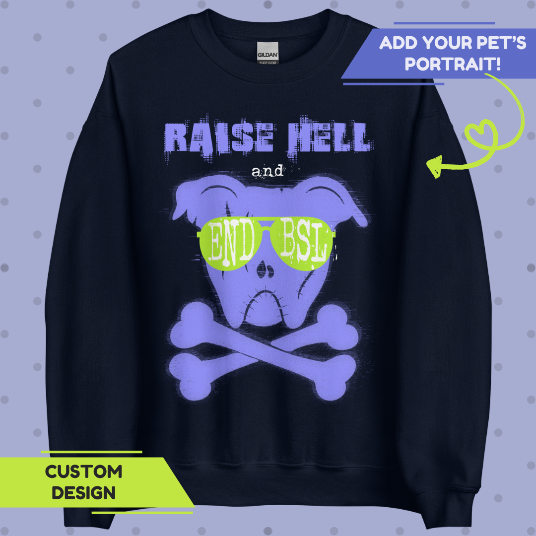 Raise some righteous hell for Pitbull Awareness with this bold, rebellious design featuring our skeletal pittie mascot, rocking shades that scream one thing loud & clear: END BSL! Featuring Lexi in our standard design, it's made for the unapologetically outspoken who aren't afraid to speak up for the misunderstood!