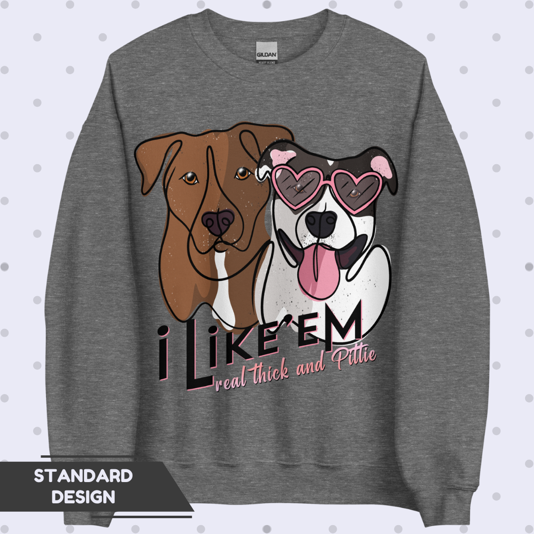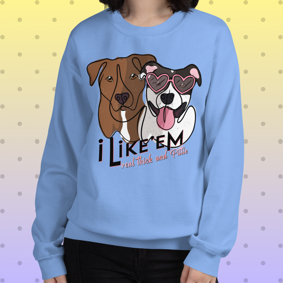 Color Choice: View chart in photos & list your choice in order notes (e.g. "white, Real Thick & Pittie, sweatshirt").