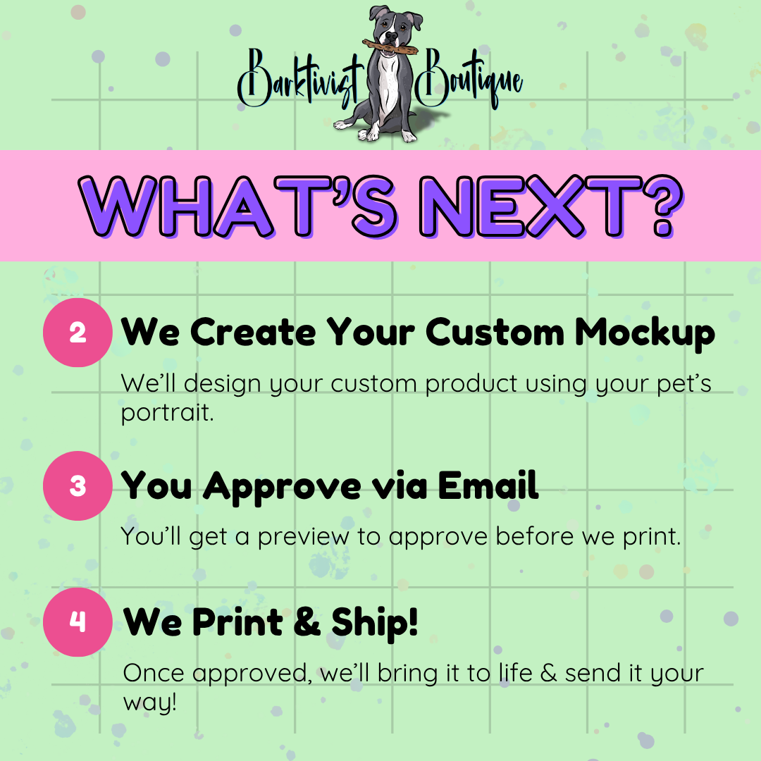- Headliner Edition: Your own pet takes center stage! A FairyTAIL Illustration of your pet will be created for this design and saved for future use, so you can have it printed on any items in upcoming orders.