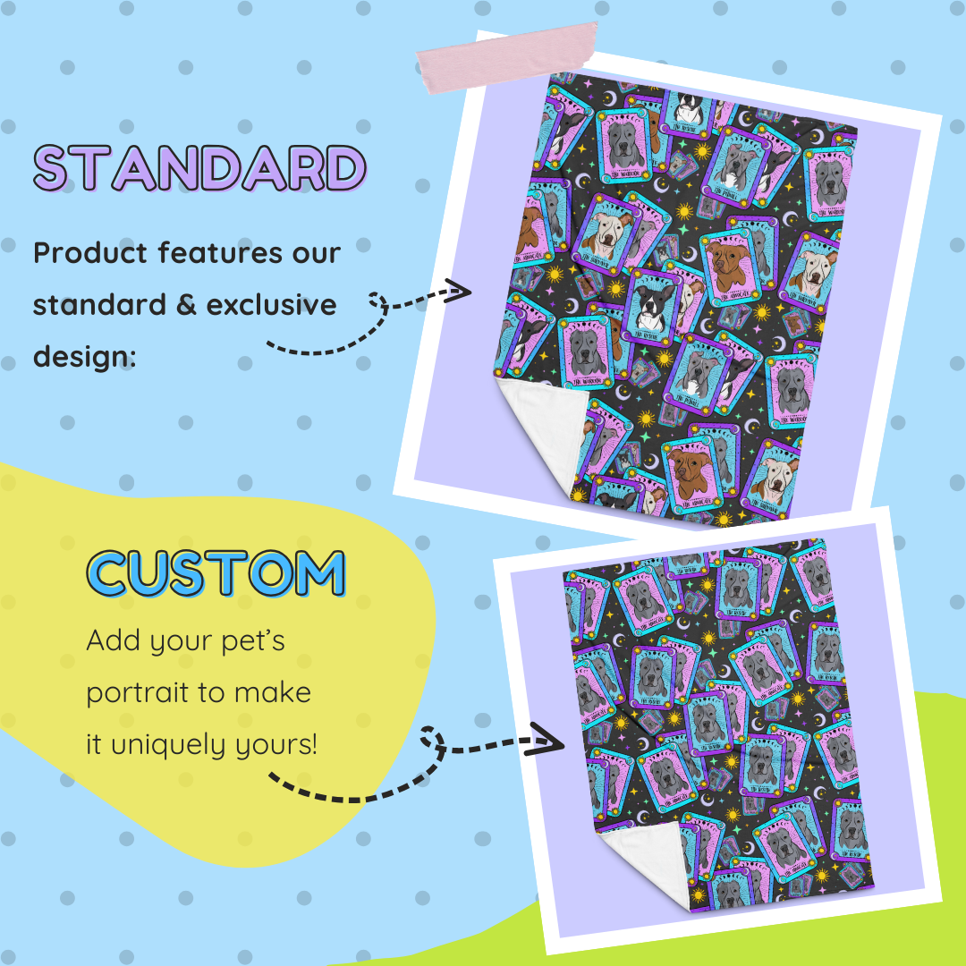 - Custom: Add your pet's portrait for a personalized touch. Custom designs may vary slightly from photos to best suit your pet's artwork.
