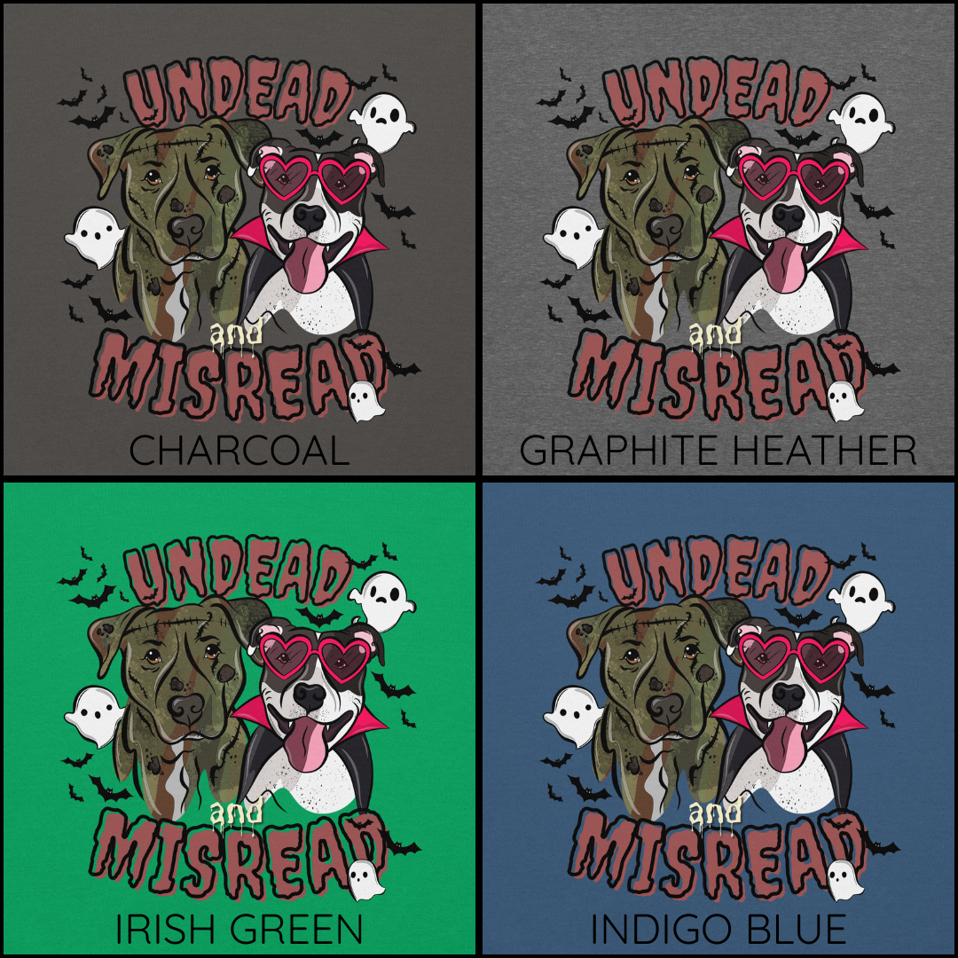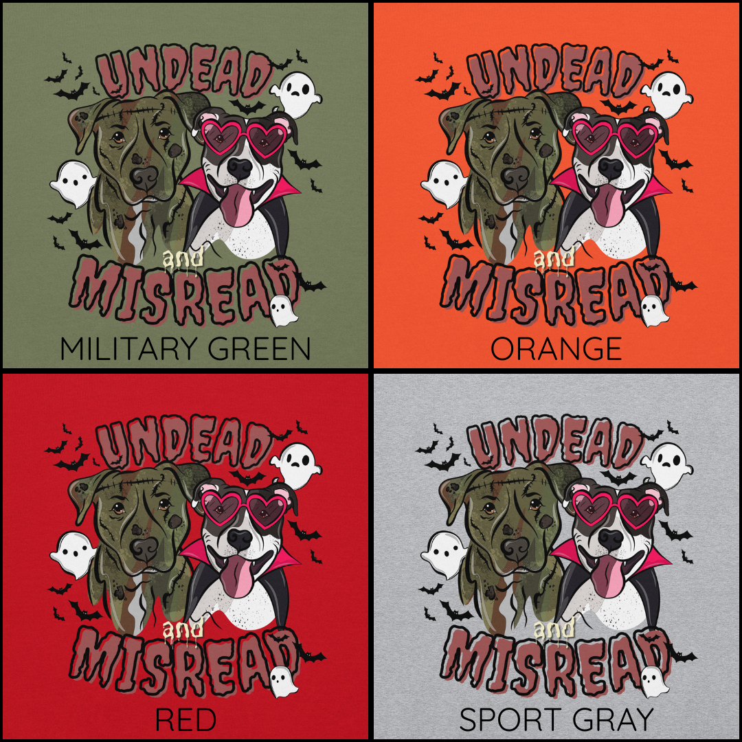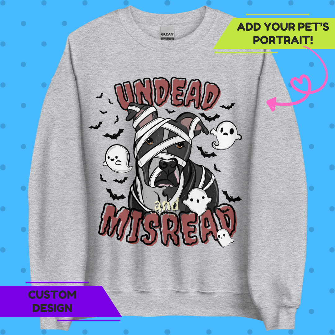 Celebrate spooky season & Pittie Awareness Month with our "Undead & Misread" sweatshirt - starring your favorite IG cuties, Zombie Toby & Dracula Tilly! With a vintage horror flick vibe & a wink at how often pitties are misunderstood, this design is equal parts playful & powerful! Customize it to feature your own pup(s) & help reanimate the truth: they're not monsters - just misread!